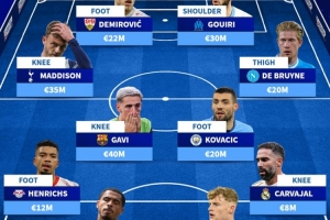 体育资讯11月4日讯 德国转会市场列出了因伤缺席今年剩余比赛球员阵容,德布劳内、加维、卡瓦哈尔在列。