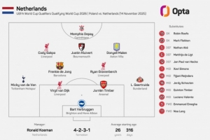 体育资讯11月15日讯 世预赛欧洲区小组赛,荷兰前往客场挑战波兰。本场比赛,荷兰排出的首发阵容中没有任何一名意甲球员,2018年9月9日以来的正式比赛首次出现如此局面。