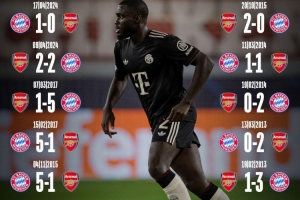 拜仁与阿森纳共计有过14次交手,拜仁8胜3平3负占据优势,其中近10次交手拜仁6胜2平2负。