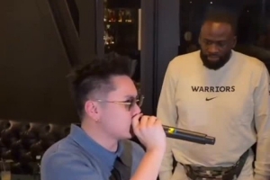赛后,有媒体晒出了揽佬与追梦同框的视频,揽佬还在追梦的面前唱了《大展鸿图》。
