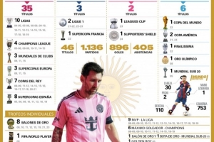世体统计梅西各项数据:进球896个,助攻405次,冠军46座+8个金球