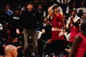 开拓者官方晒出杨瀚森过掉埃迪扣篮的视频,扣篮之后克林根等队友兴奋庆祝,官推配文写道:“瀚森的扣篮时间!”