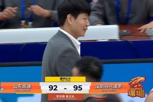 比赛第四节最后时刻,深圳球员王浩然在外线接球手起刀落三分命中,给山东留下最后1秒的时间。