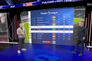 在周一晚上的节目开始阶段,琼斯再次抓住机会调侃卡拉格。在天空体育英超频道的X账号上分享的一段视频中,琼斯说:“今晚杰米·卡拉格独自一人在这里,这真是个大惊喜,因为几周前大家还以为他的腿已经不行了。”卡拉格听到后忍不住笑了起来,但琼斯迅速转移了话题。