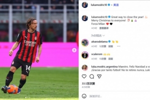 莫德里奇写道:“以最好的方式结束这一年,大家圣诞快乐,Forza Milan ❤️🖤”