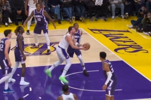 GIF-东契奇高难度拉杆上篮2+1