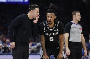 赛前,马刺主帅米奇·约翰逊在接受采访时表示,自己对卡斯尔今天(拇指受伤)能够上场持乐观态度。