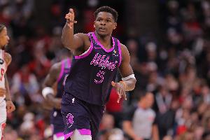 目前,爱德华兹投进3记三分,他的三分命中数突破1200记,25岁以前NBA首人。