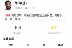 体育资讯1月5日讯 曼城在本轮英超1-1战平切尔西,谢尔基本场数据如下: