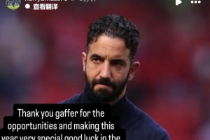 阿玛斯社媒晒出阿莫林的照片,配文:“谢谢你教练,感谢你给予我机会,让这一年如此特别,祝你未来好运。”