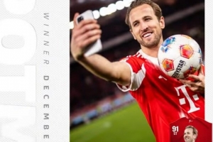 体育资讯1月8日讯 官方消息,拜仁前锋凯恩当选德甲联赛十二月最佳球员。