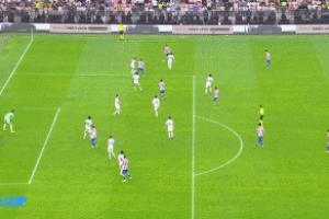 比赛全场补时最后阶段,马竞前场进攻,阿尔马达挑传,阿尔瓦雷斯近距离的射门偏出远端立柱。