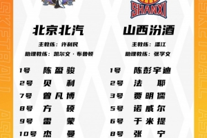 体育资讯1月16日讯 今晚19:35,北京主场迎战山西,赛前大名单出炉。