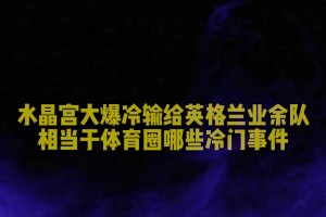 下一篇: 太炸裂了💥!水晶宫遭业余队淘汰,TNT解说员彻底疯狂了
